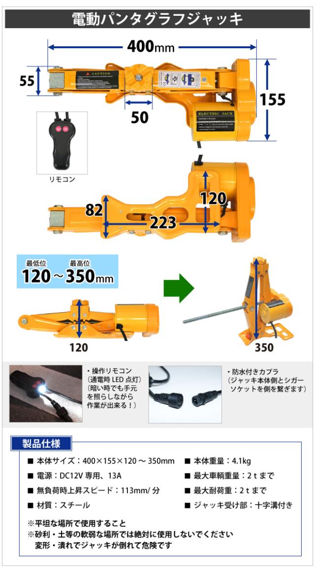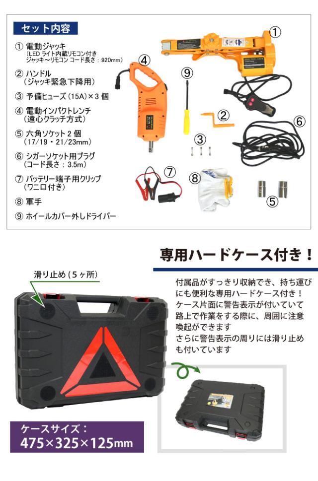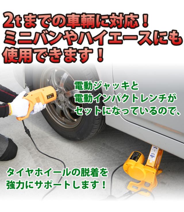 電動ジャッキ 2t パンタグラフジャッキ インパクトレンチ セット DC12V 専用ケース付 ジャッキ カージャッキ タイヤ交換 KIKAIYA