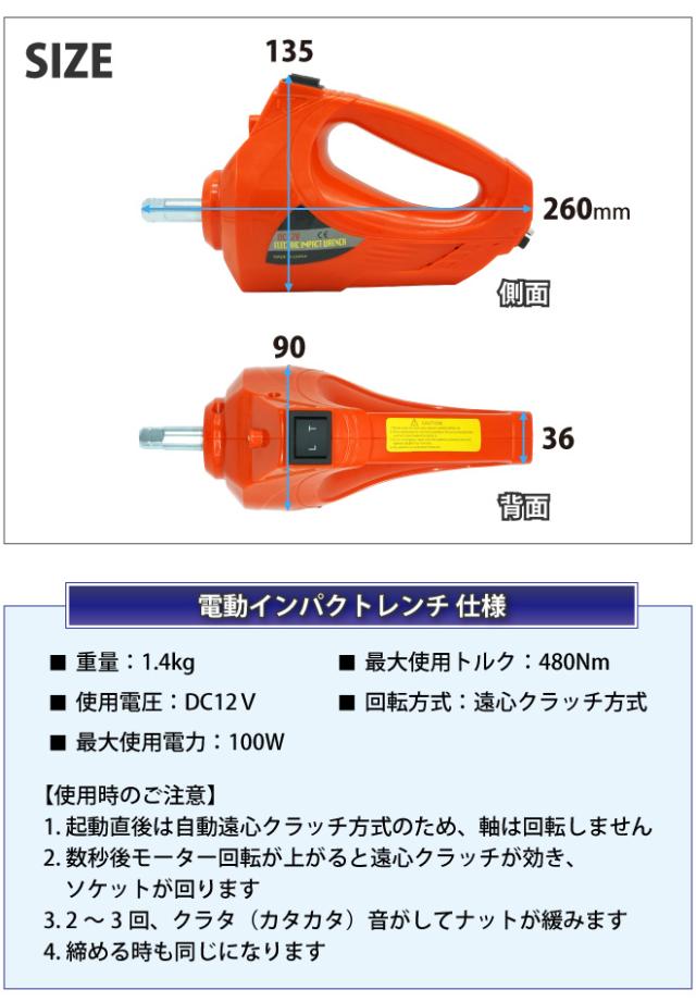 タイヤホイールの脱着を強力サポート!空気圧調整もできる! ●本機はDC12V車専用です ●電動油圧ジャッキ+インパクトで小型車から大型乗用車まで使える タイヤ交換工具セットです ●いざという時に役立つ安全ハンマー・シートベルトカッター・軍手も付属 ●力のいるジャッキアップやホイールナットの脱着等の作業負荷を大幅に軽減します ●電源は車のシガーソケットやバッテリー端子から取れる2WAY方式です ●専用ハードケース付きですっきり収納 ●ケース表面に警告表示版付きなので、路上での作業も安心して行えます ●車両重量3tまででご使用ください ●万が一ジャッキが上昇したまま降下しない場合でも、手動で下げる事ができます 【ご注意】 ・ジャッキは必ずコンクリートなどの固くて平坦な場所で使用してください ・本機を使用する際には、車止めやジャッキスタンド等を使用して事故防止に 努めてください また、車体の下には入らないでください ・タイヤ交換後は必ずトルクレンチ等で既定のトルクを確認・締め直しをしてください 走行中にタイヤが外れるなどの重大事故の原因になります 品番:JIS-2 |