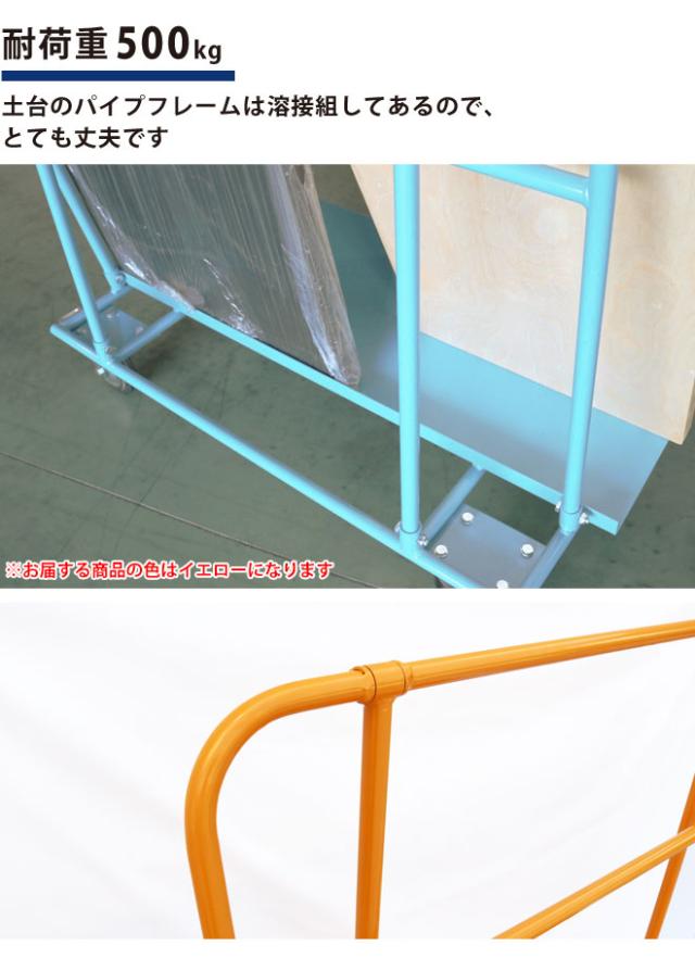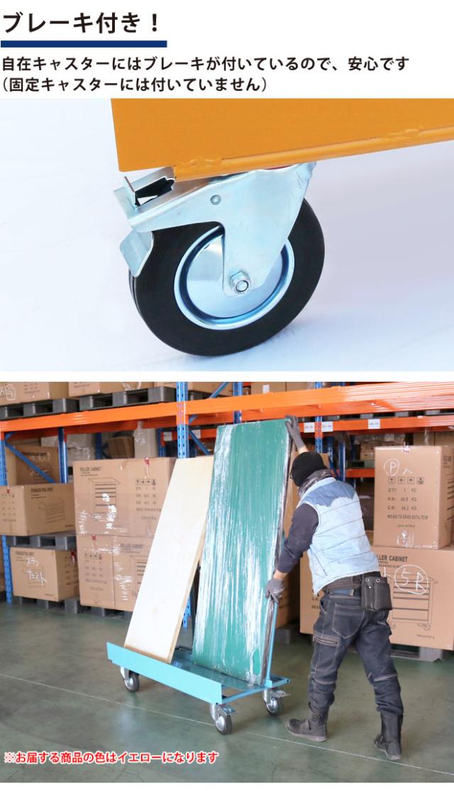 長尺物台車 500kg ノーパンクタイヤ 業務用 ボード台車イエロー 運搬台車 重量物 パネルカート 業務用台車 板運搬車 KIKAIYA