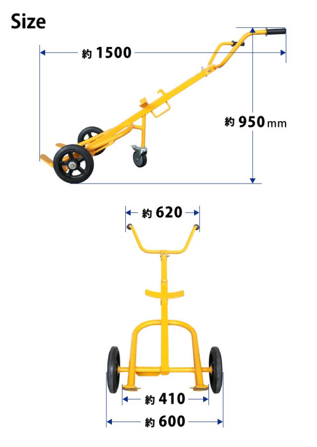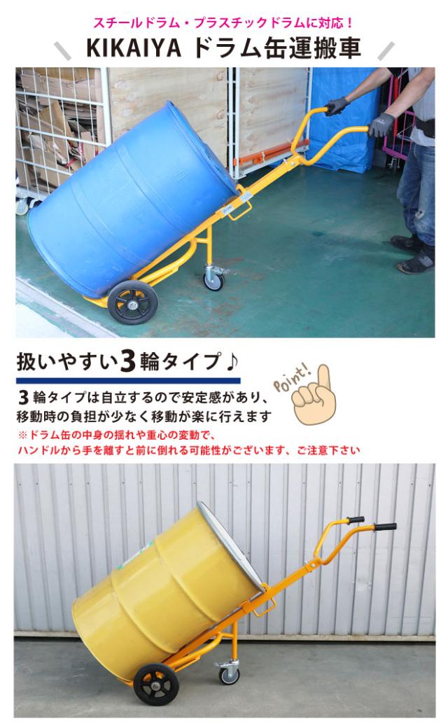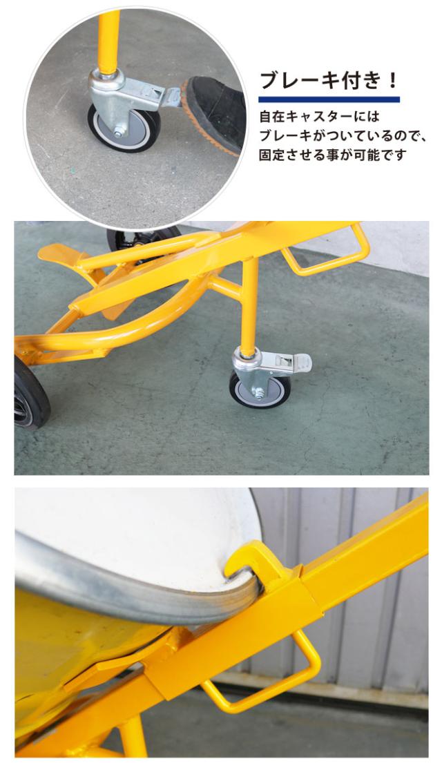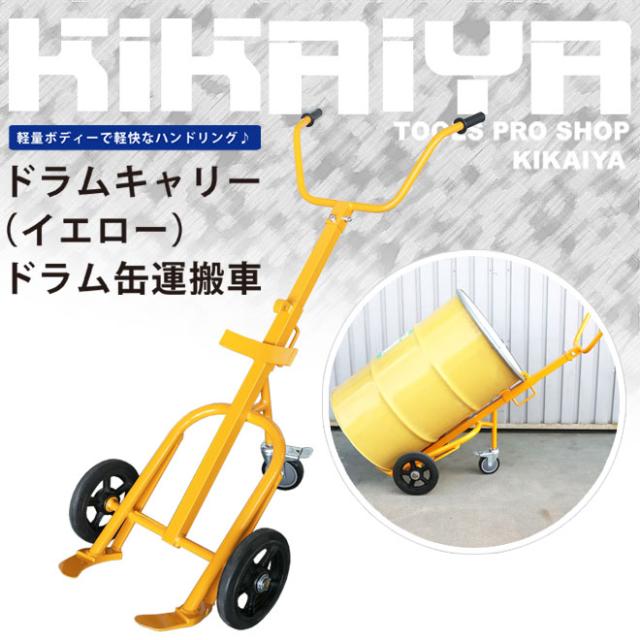 ドラムキャリー イエロー 耐荷重400kg ドラム缶運搬車 Y型 ドラムポーター スチールドラム・ポリドラム兼用 KIKAIYA
