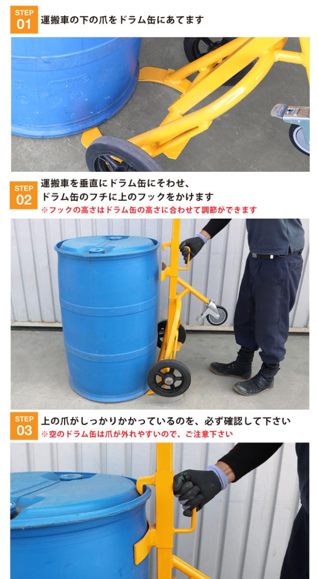 軽量ボディーで軽快なハンドリング ●スチールドラム・プラスチックドラムに対応したドラムキャリーです ●上のフックをドラム缶のフチにひっかけ、重いドラム缶を持ち上げます ●上のフックの高さはドラム缶の高さに合わせて調節ができます ●3輪タイプは自立するので安定感があり、 移動時の負担が少なく移動が楽に行えます ●自在キャスターにはブレーキがついているので、固定させる事が可能です 【ご注意】 ・空のドラム缶は爪が外れやすいので、ご注意下さい ・ドラム缶の中身の揺れや重心の変動で、ハンドルから手を離すと前に倒れる可能性が ございます ハンドルから手を離す際は、十分にご注意下さい ・スチールオープンドラムはフタのない状態では使用できません ・力の強さは個人差がありますので、女性や力が弱い方はお使いいただけない場合が ございます ※商品は組立済みの状態でお届け致します ※外見保証はございません (輸送中による細かいキズ、ローラー表面の汚れ等は予めご了承ください) ※サイズをよくご確認の上、お間違いのないようご注文をお願いいたします お客様によるイメージ違いでの返品は一切お受け出来ませんので予めご注意ください 【部品はこちら】KIKAIYA ハンドルグリップ 2個セット DHR-4用 品番:DHR-4 |