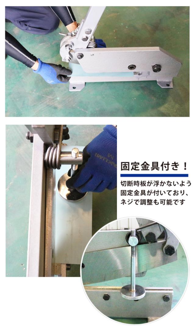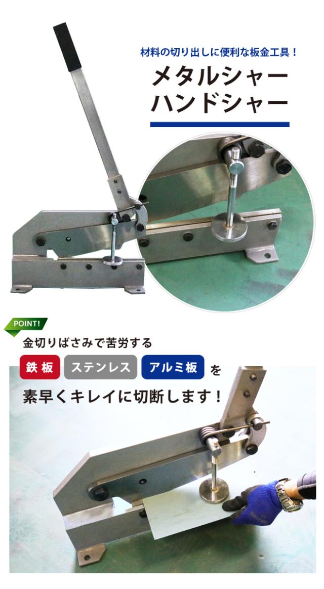 鉄板、ステンレス、アルミ板を素早くキレイに切断可能! ●材料の切り出しに便利な板金工具です ●金切りばさみで苦労する鉄やステンレス、アルミ板を素早くキレイに切断します ●切断時板が浮かないよう固定金具が付いており、ネジで調整も可能です ●シンプルな構造なので、汎用性が高く、いろいろな方におススメです ●この商品は輸入品の為、梱包時は防錆油を塗布しております ●ハンドルの組立てはお客様ご自身でお願いします (スパナ/メガネ19mmがあると便利です) ※本品は新品ですが検品の為、開梱して動作確認しております ★交換用替刃もございます *事故防止の為保管の際にはお子様の手の届かない場所に保管頂き ご使用の際には十分にご注意願います 品番:HS-12 |