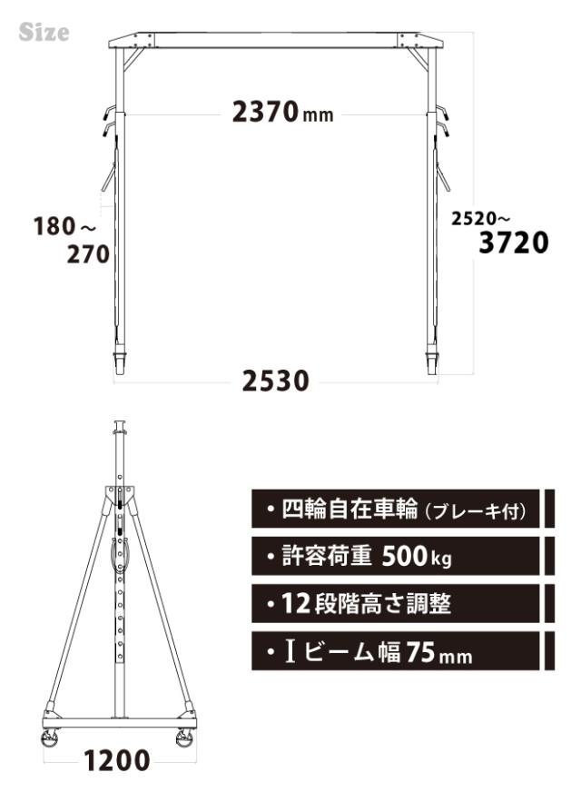 | トップビームのサイズ | 高さ 120×幅 75mm |