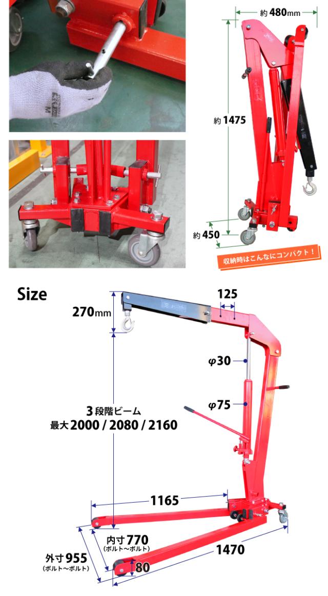 | 吊り上げ能力 | 最大/1トン 最大伸長時/500kg |