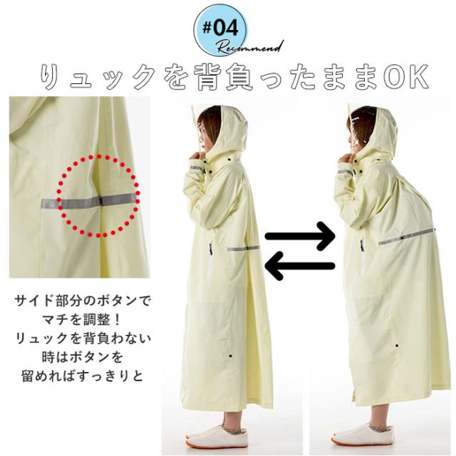レインコート 自転車 通学 通販 ママ 学生 レディース メンズ ロング 通学用 無地 シンプル 反射材 ライン リフレクター フード付き リュック対応 防水 撥水 軽量 軽い 透湿