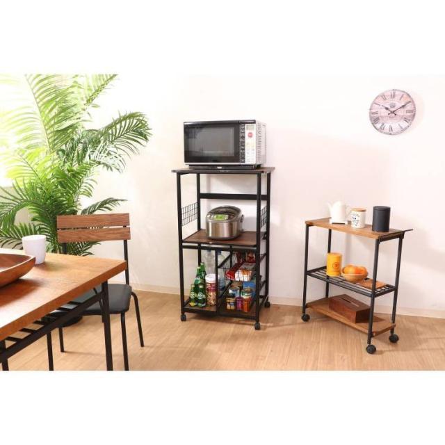 レンジ台 レンジ レンジラック 幅60 キャスター付き 3段 木製 スリム おしゃれ 安い コンパクト キッチン ワゴン キッチンワゴン ロータイプ アイアン
