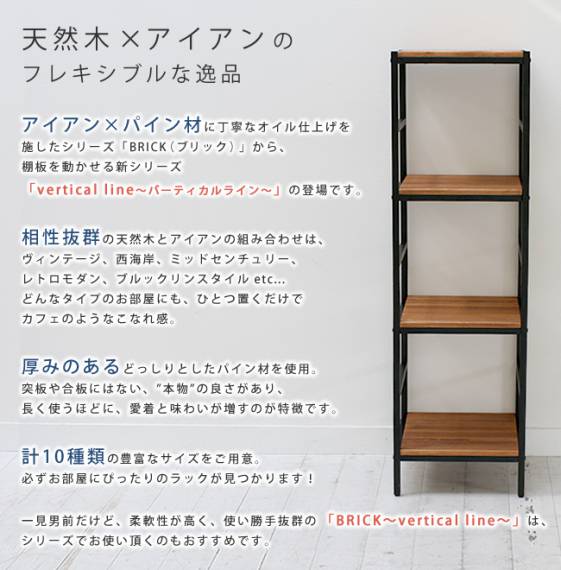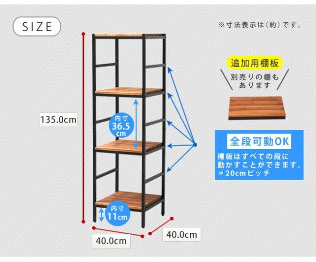 ラック 棚 オープンラック 4段 アイアン 木 シェルフ オープンシェルフ 可動 収納 スリム 木製 天板 シェルフ棚 高さ調整 パイン 薄型 幅40 収納棚 おしゃれ 天然木 ヴィンテージ リビング 本棚 ディスプレイ 壁面 ウッド