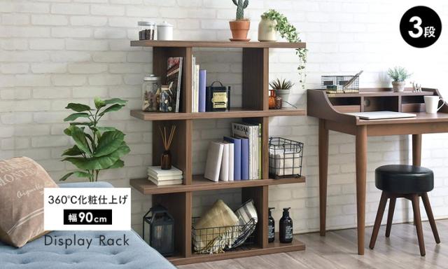 オープンラック シェルフ スリム 木製 棚 ラック おしゃれ 収納 飾り棚 ディスプレイ 北欧 安い 3段 シェルフ棚 本棚 幅90 小さい オープンシェルフ