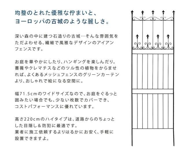 フェンス 屋外 アイアン アイアンフェンス ガーデニング 庭 簡単 ガーデン ガーデンフェンス アンティーク 柵 挿すだけ 埋め込み ハイタイプ セット 黒 おしゃれ 簡単取り付け 簡単設置 本体 園芸 鉄 つる性植物 バラ 誘引 隣家
