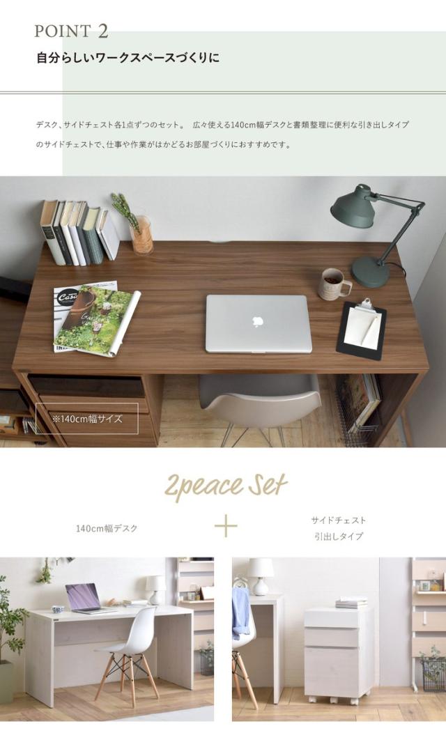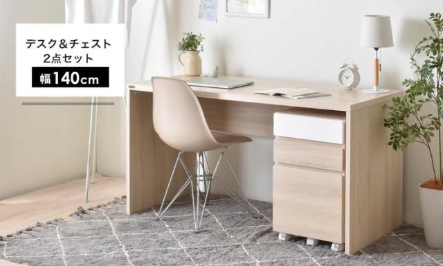 | 商品サイズ | デスク:W140×D60×H73cm、サイドチェスト:W40×D45×H65.5cm |