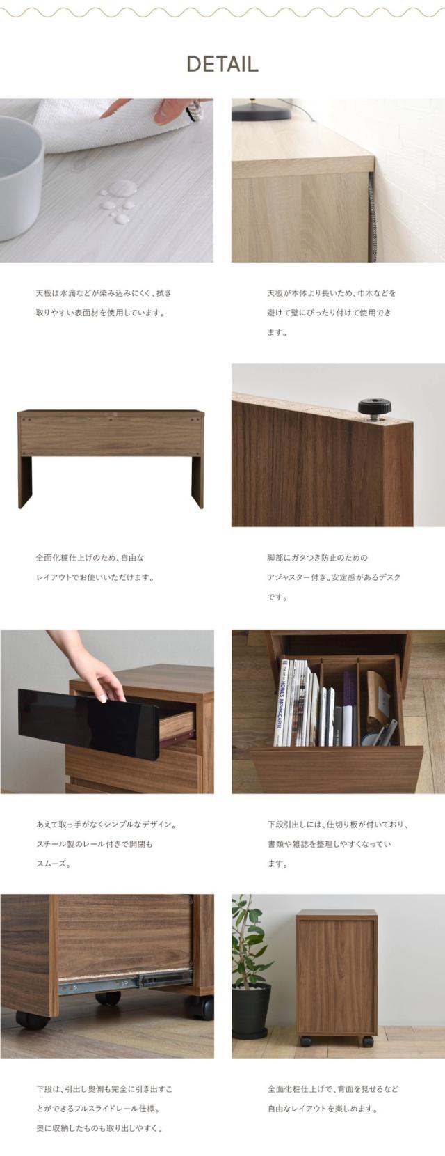 | 備考 | デスク:お客様組立商品です。組立目安時間:60分/2人 (∗ 必要な工具はお客様にてご用意いただいております。) サイドチェスト:完成品。 (∗ キャスターのみお客様取付け商品です。) |