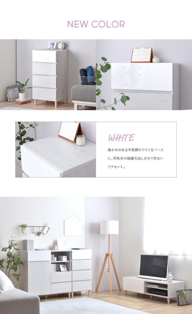 | 素材 | 【本体】プリント紙化粧繊維板 【鏡面引出し】ウレタン樹脂塗装 【脚】天然木 |