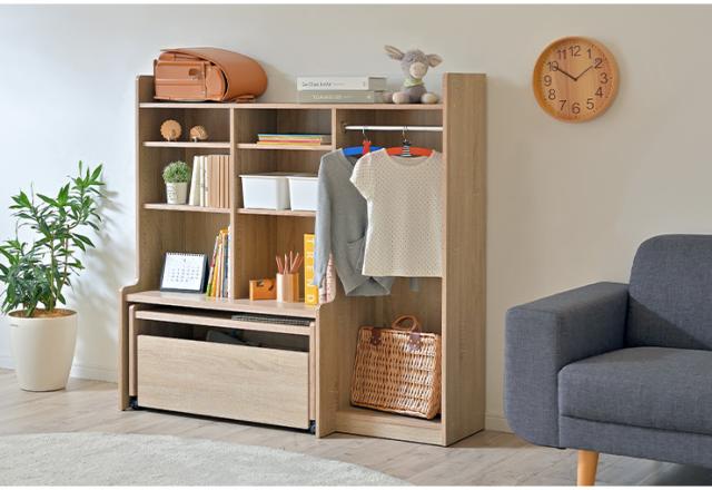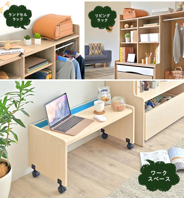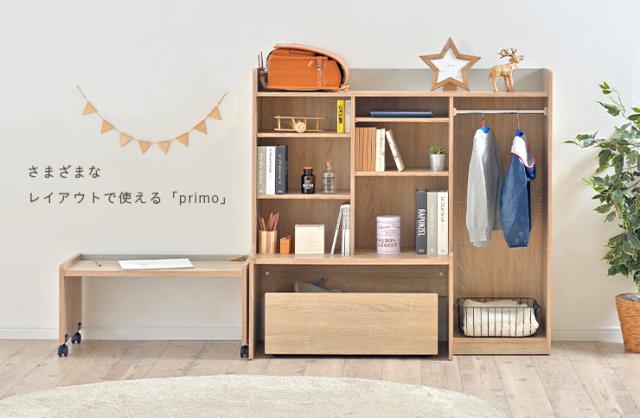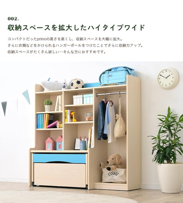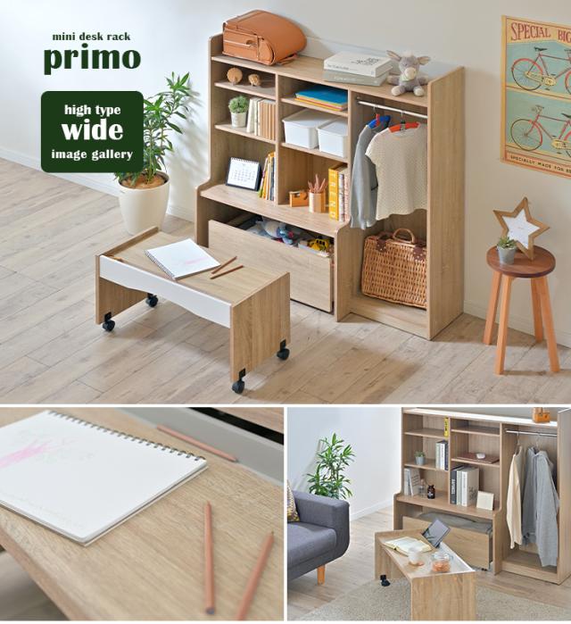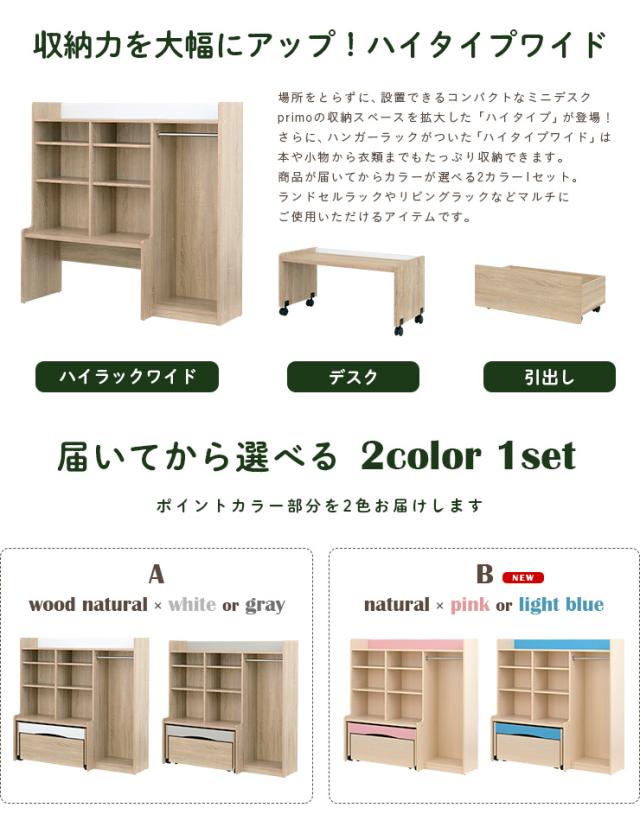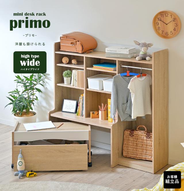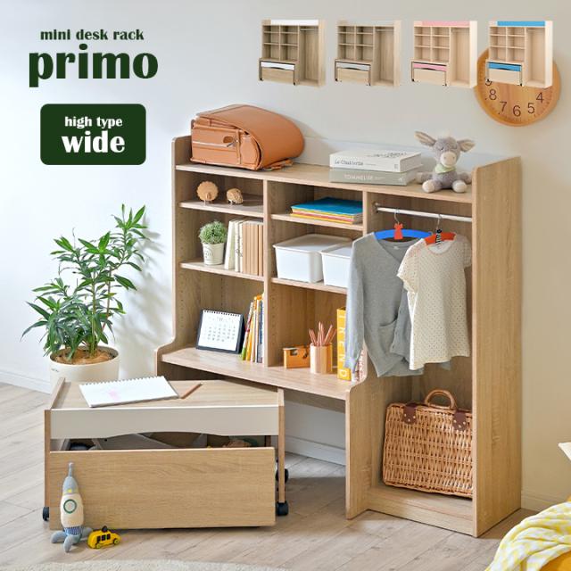 【たっぷり収納/2カラー1セット】ミニデスクラック primo(プリモ) Hiタイプ ワイド 3点セット 木製 キッズハンガーラック 子供用デスク キッズデスク 子供用机 子ども机 ランドセルラック リビングラック おもちゃ箱 おもちゃ収納