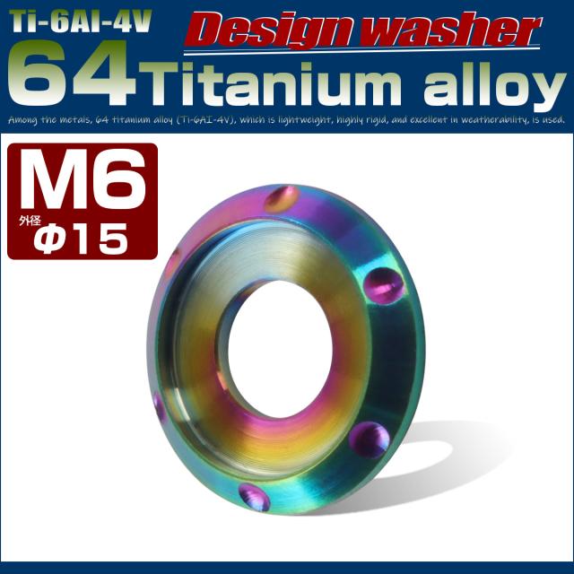 チタンワッシャー M6 外径15mm 座面枠付き レインボー 虹色 デザイン JA635