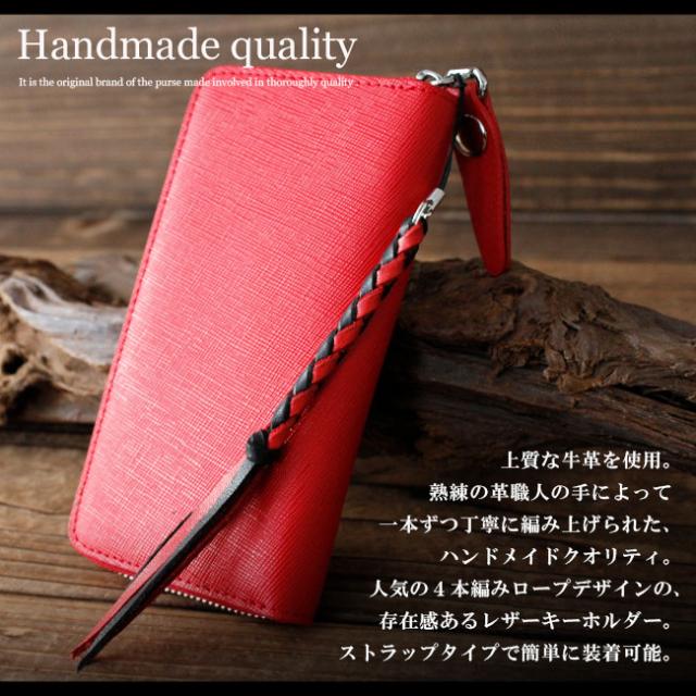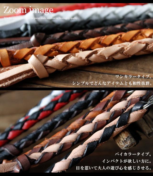 本革を使用したストラップになります。革職人がひとつひとつ丁寧に編み込みをしています。スマホや革小物にぴったりのアイテムです。
