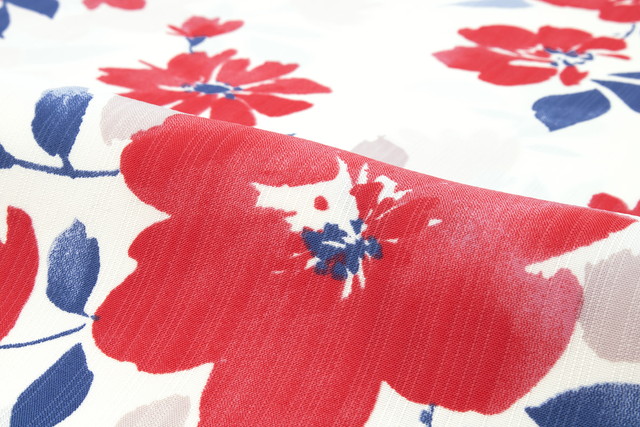 色鮮やかな椿のような花々が濃淡を生かした表現で、モダンにデザインされています。