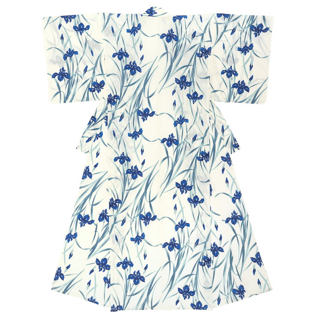浴衣 レディース ブルー 青系 ホワイト 白 菖蒲 花 フラワー レトロモダン 綿 変わり織り 夏祭り 花火大会 女性用 仕立て上がり 【フリーサイズ】【送料無料】