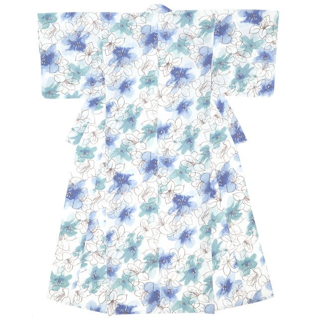 浴衣 レディース ホワイト 白 水色 青 ライトブルー ブルー 百合 ユリ 花 フラワー モダン 変わり織り 夏祭り 花火大会 女性用 仕立て上がり 【Sサイズ】【フリーサイズ】【送料無料】