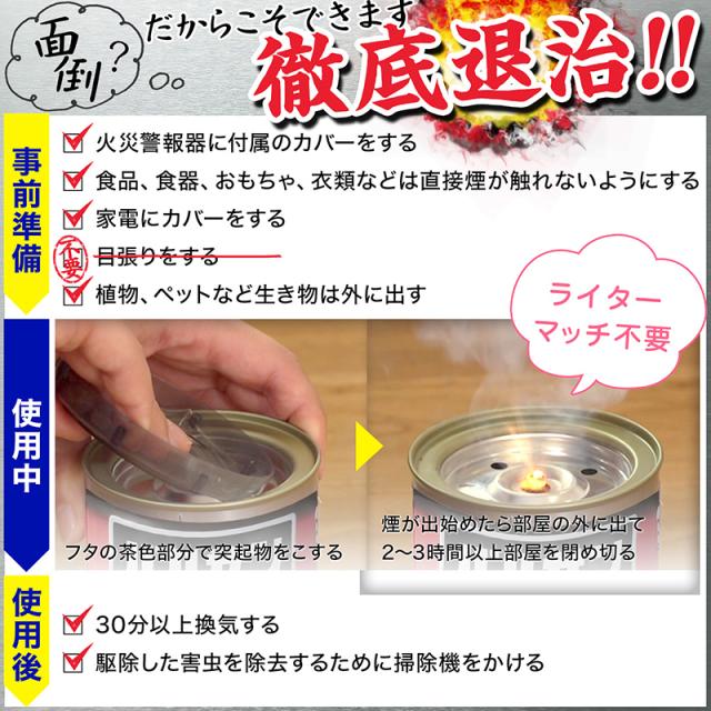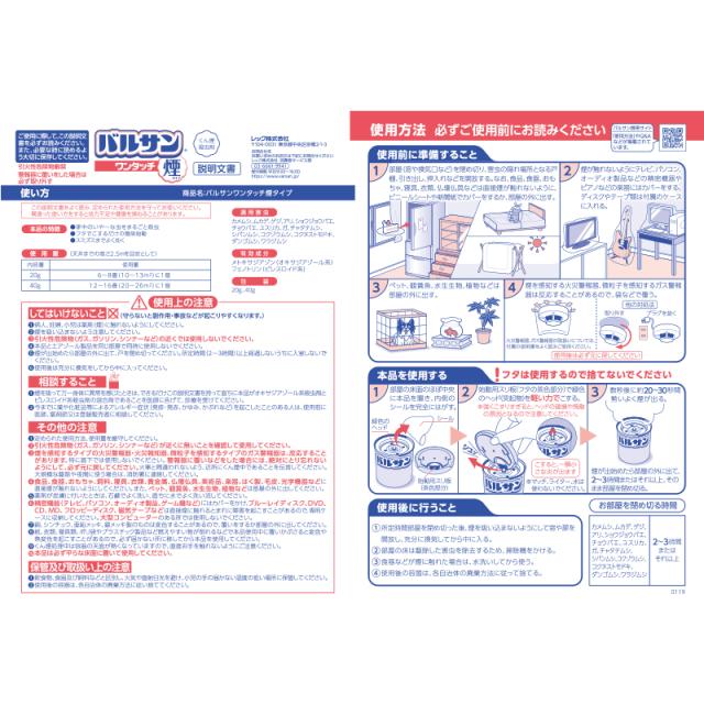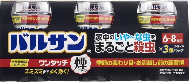 ●殺虫くん煙剤のパイオニアとして70年。信頼と実績のバルサンブランドから、さまざまな不快害虫に効く「くん煙剤」が出ました。●バルサン独自の強力な噴射力で、お部屋のスミズミまで煙が届き、隠れた不快害虫によく効きます。●お部屋に発生・侵入する、幅広い種類の不快害虫を、効きめのバルサンが駆除します。●バルサンの高い効き目の秘密は・・・「這い出させる撹乱効果」、「動きを止める即効性」、「しっかり息の根を止める高い致死性」の3つを兼ね備えたバルサン独自の組成にあります。●殺虫成分が家具の裏などスミズミまで行き渡り、殺虫効果を発揮します。●水やマッチを使わず、蓋でこするだけの簡単スタートです。●害虫駆除及び、侵入を防ぐために、季節の変わり目やお引越し前など、年間を通した定期的なご使用をおすすめします。●用法・用量を守ってご使用いただければ、乳児や小さなお子様がいても安心です。●十分な効果を発揮した後、30分の換気で成分がほとんどゼロになり、微量に残った成分も光などで分解してなくなります。●内容量:20g。6~8畳(10~13平方メートル)に1個を目安としてお使いください。