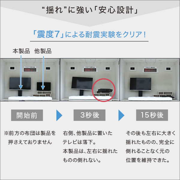 生活スペースを取らない壁寄せテレビスタンド(スイングロータイプ)!最大可動域240度のワイドスイング機能付き!取付けテレビは32〜55インチまで対応可能。配線や電源タップを背面に収納でき、見た目が綺麗でスッキリ!震度7の耐震試験をクリア!