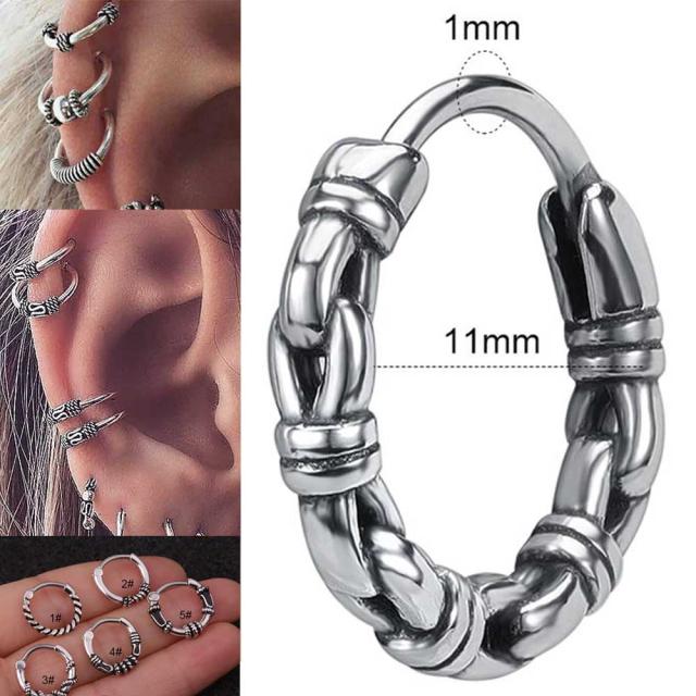 ボディピアスのクリッカーのようなヒンジ付き(蝶番つき)のリングピアス。 シルバーピアスでも人気のデザインのステンレスリングピアスは、デザインの幅もスリムなので重ね付けにも最適。女性にも男性にも使えるデザイン。