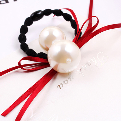 可愛い リボン 大ぶり パール ヘアゴム ★ 髪飾り コサージュ シュシュ ヘアアクセサリー 髪留め ブレスレット レディース 赤 H40-1
