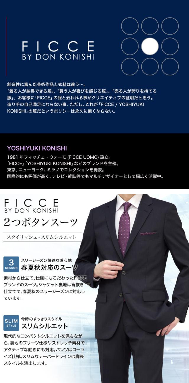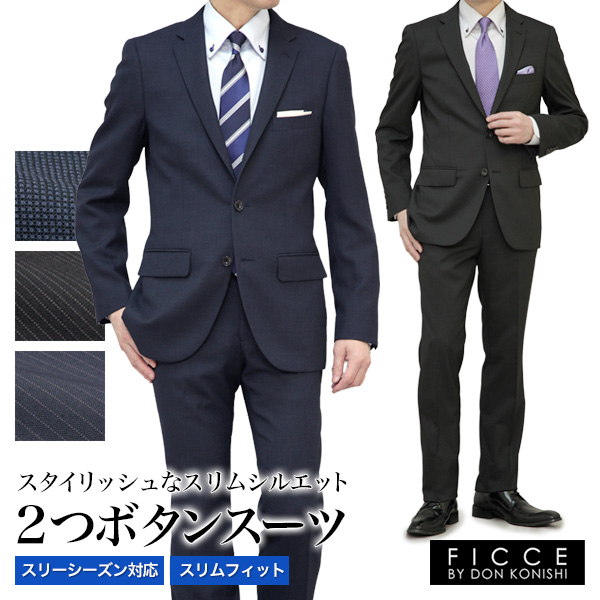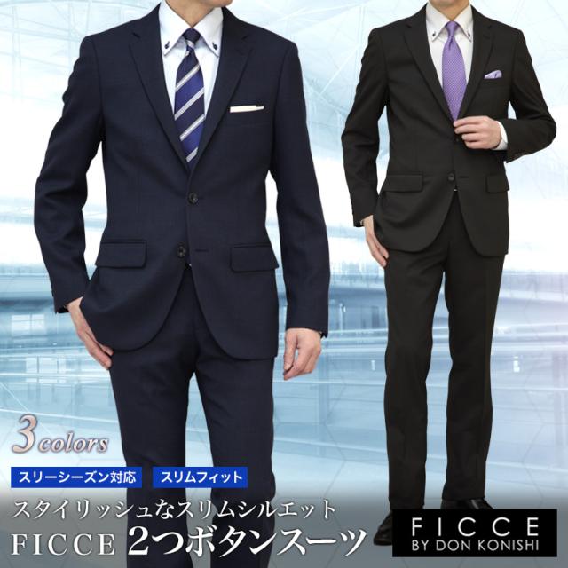 スーツ メンズ スリム FICCE ブランドスーツ 2つボタン 春夏秋 ノータック ローライズ ウール混 ビジネス 入社式 フレッシャーズ 入学式 入園式 結婚式 披露宴 パーティー セレモニー 卒業式 卒園式