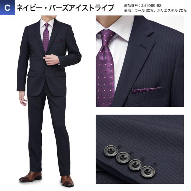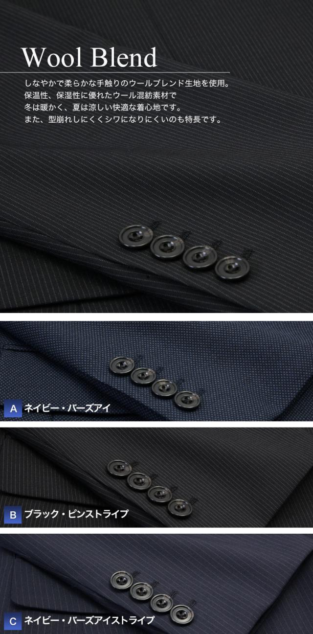 | 【A】ネイビー・バーズアイ(241061-88) 【B】ブラック・ピンストライプ(241064-09) 【C】ネイビー・バーズアイストライプ(241065-88) 2024年4月より新たな色柄を販売しております |