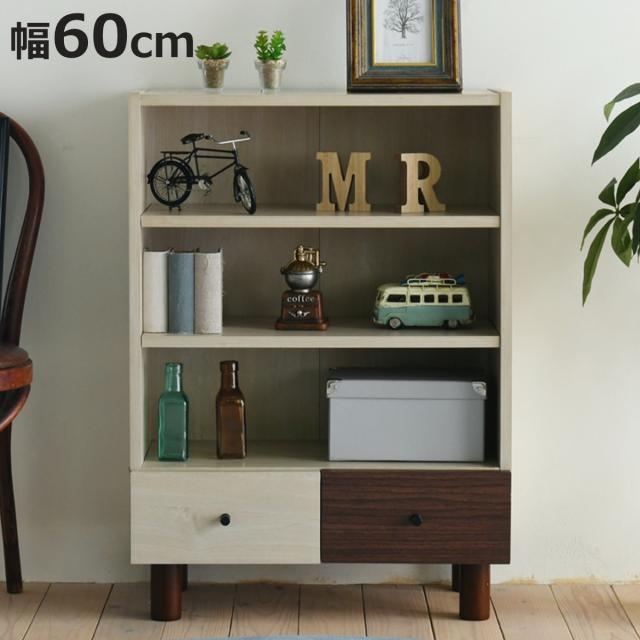 オープンラック 幅60cm 本棚 引出し付 ツートーン 積み重ね対応 ( シェルフ ラック 収納棚 木製 収納 オープンシェルフ 家具 リビング収納 コンソール ツートン おしゃれ 可愛い 大人可愛い 幅60 60cm )