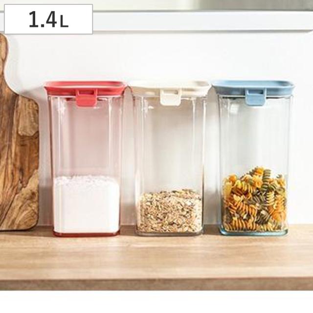 保存容器 プラスチック製 1.4L Lサイズ スタッキングできる キャニスター モデュールプラス ホワイト ( ストッカー 調味料入れ シリコンパッキン 保存 容器 調味料ポット フードストッカー スクエア 角型 おしゃれ プラスチック )