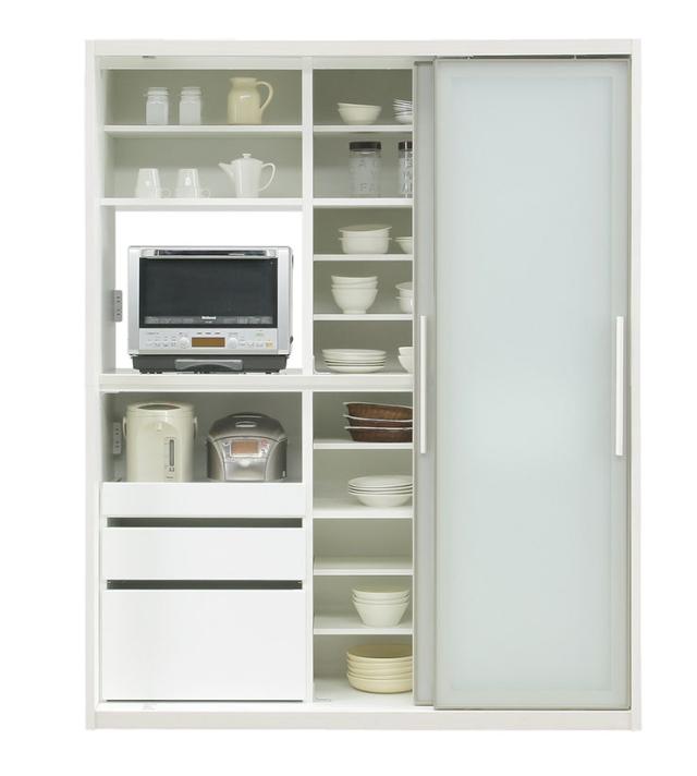 家電まで全て隠せるタイプのキッチンボード