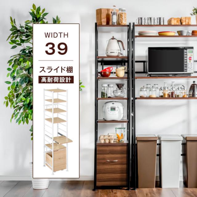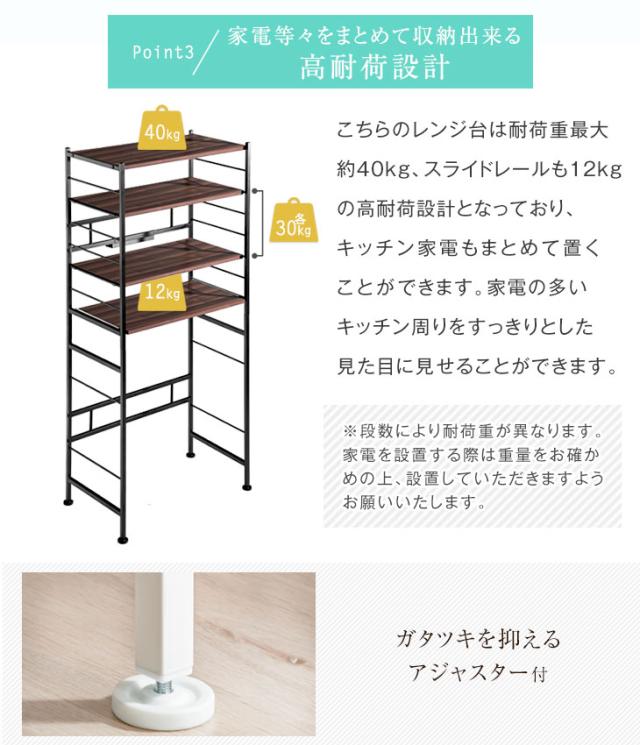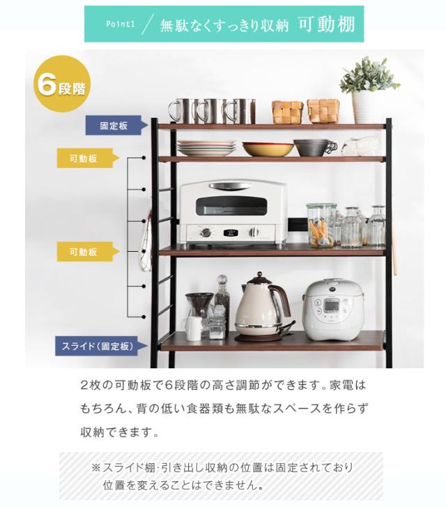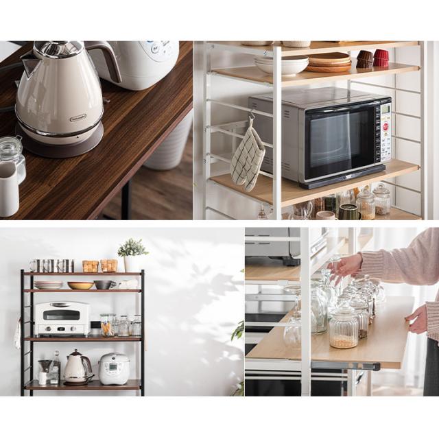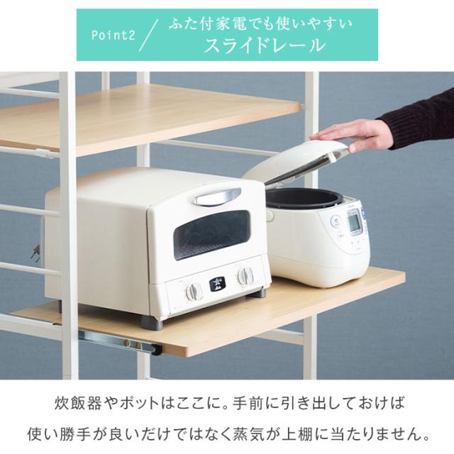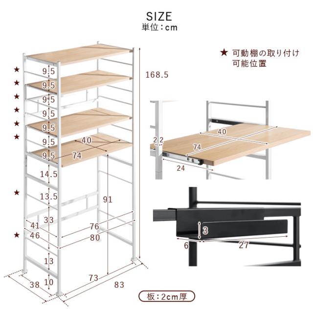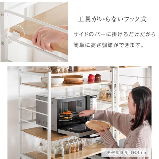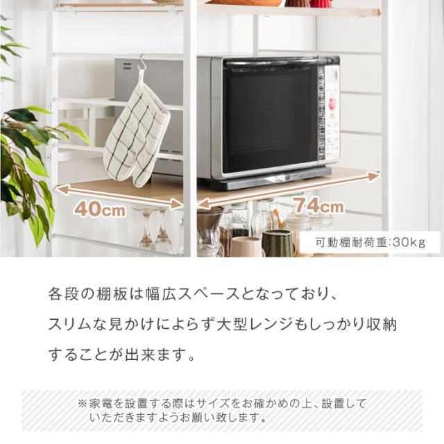 レンジラック 高耐荷設計 高さ168.5cm ハイタイプ 幅83 奥行48 シンプル ブラウン ナチュラル 北欧 木目調 電子レンジ ボード 収納 食器棚 スライドトレー おしゃれ【商品番号:56800015】