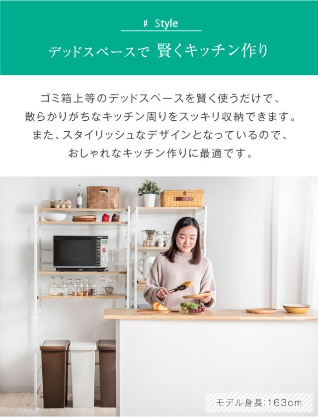 レンジ台 レンジラック ゴミ箱 幅83cm 4段 大型レンジ対応 高耐荷設計 ナチュラル ブラウン ゴミ箱ラック オープンラック ゴミ箱上ラック スライド棚 キッチンラック キッチン収納 キッチンボード