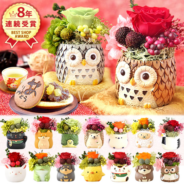 誕生日プレゼント お祝い 送料無料 お菓子 スイーツ 和菓子 バラ 薔薇 プリザーブドフラワー 動物 アニマル ふくろう 置物 グッズ どら焼き お礼 退職祝い お供え 敬老の日 手土産 お返し ギフト おいもや gift-issuna
