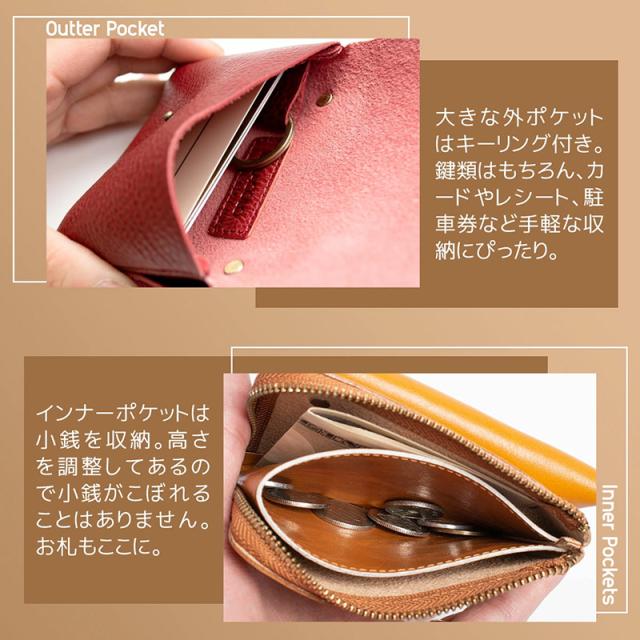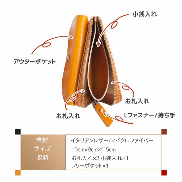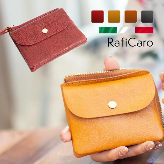 【限定500円OFFクーポン】【3,480円→2,980円】RafiCaro キーリング付き外ポケット本革ミニ財布 L字ファスナー ミニ財布 レディース 牛革 イタリアンレザー フラップ 小銭入れ カード入れ 軽量 コンパクト 薄い 薄型 財布