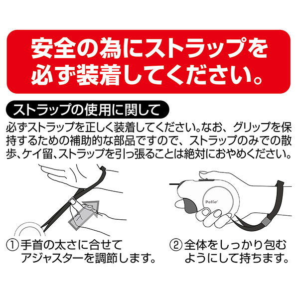 〈ストラップの使用に関して〉必ずストラップを正しく装着してください。なお、グリップを保持するための補助的な部品ですので、ストラップのみでの散歩、ケイ留、ストラップを引っ張ることは絶対におやめください。1手首の太さに合せてアジャスターを調節します。2全体をしっかり包むようにして持ちます。