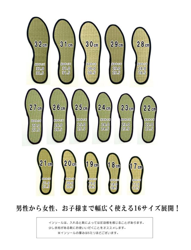 い草を使用したインソールです。い草の消臭効果・湿度調整機能で、蒸れを抑え、臭いを消臭する効果があります。革靴やスニーカーなどにもおすすめです。サイズは22cmから27cmまでご用意しています。