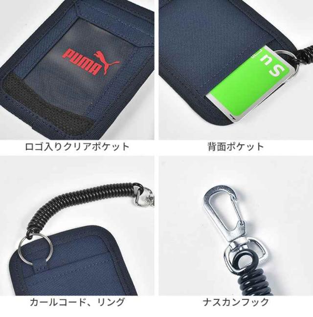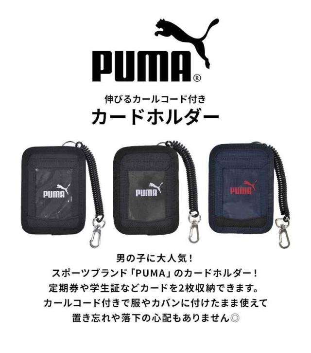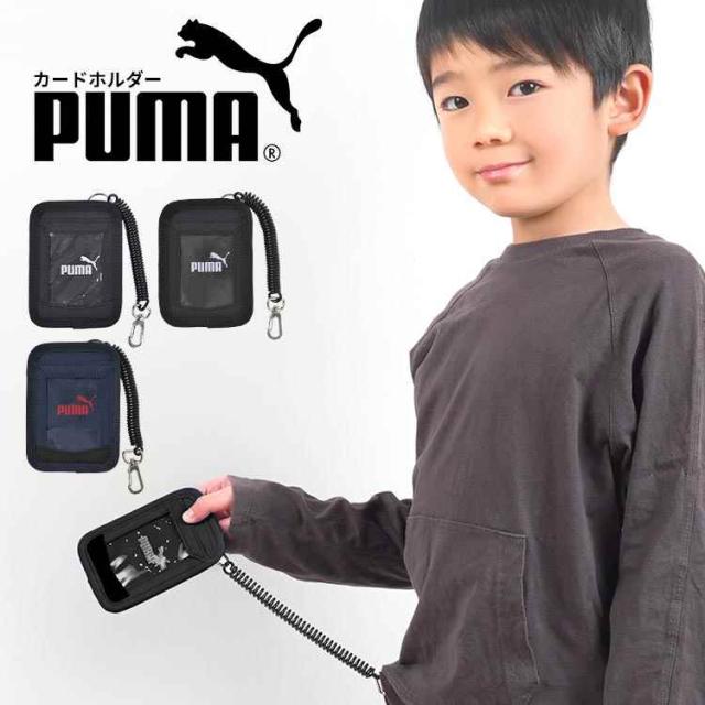 パスケース プーマ PUMA 男の子 子供 キッズ 小学生 中学生 定期入れ カールコード コイルチェーン付き 伸びる 男子 ジュニア 通学 カードホルダー カードケース ICカード 2枚 定期ケース かっこいい シンプル 黒 ブラック ネイビー 紺 シルバー パープル 入学 準備 新学期