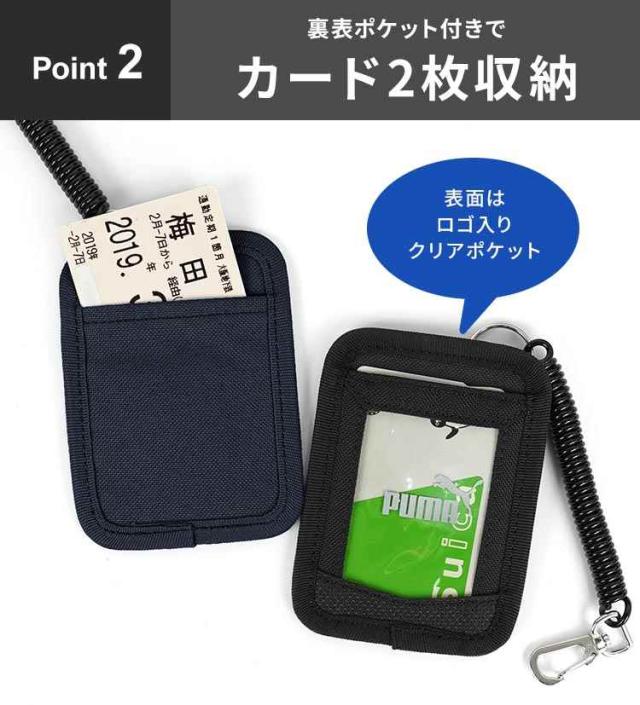 男の子に大人気!PUMAのカードホルダー!定期券や学生証などカードを2枚収納できます。コイルチェーン付きで服やカバンに付けたまま使えるので、置き忘れや落下の心配もありません◎