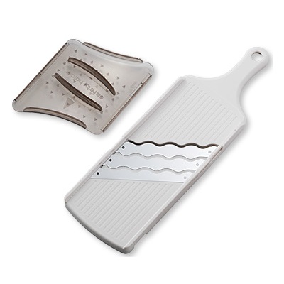 スライサー本体:ボディー:ABS樹脂(耐熱温度:80℃)、切れ刃:ステンレス刃物鋼