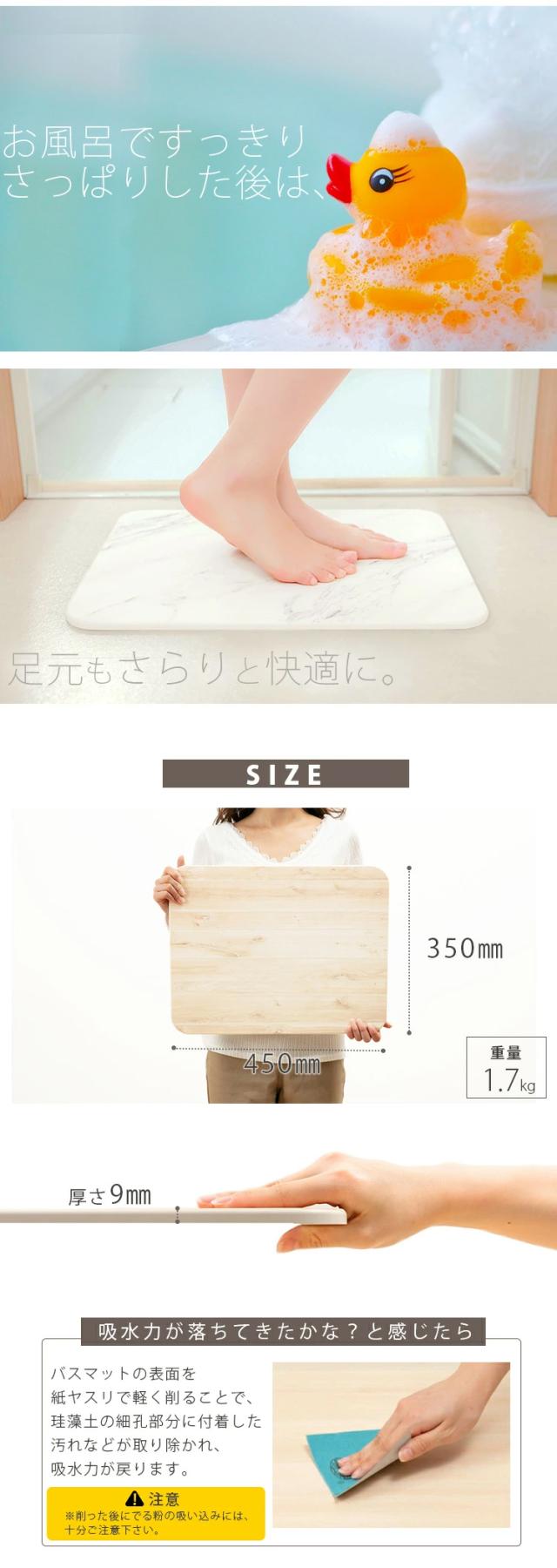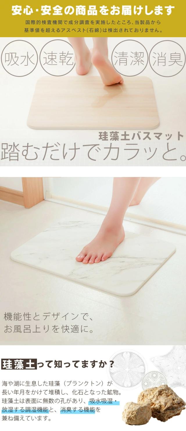 ★レビュー投稿でポイント還元★ バスマット 速乾 珪藻土バスマット Mサイズ 45×35cm おしゃれ 大理石調 木目調 吸水速乾 消臭 清潔 お手入れ簡単 陰干し 洗濯不要 お風呂 脱衣所 浴室 マット 足拭きマット 足元マット ハード アスベスト 検査済 珪藻土 BMD-4535U *
