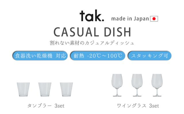 【12時迄のご注文は当日発送】 tak CASUAL DISH tumbler 3pcs JTN-0210 [タンブラー おしゃれ 割れない グラス セット 食事 パーティー 食器 キャンプ アウトドア スタッキング クリア 日本製 介護 ギフト 食洗機OK ホット アイス 持ち運び易い 透明感 プレゼント 子供]