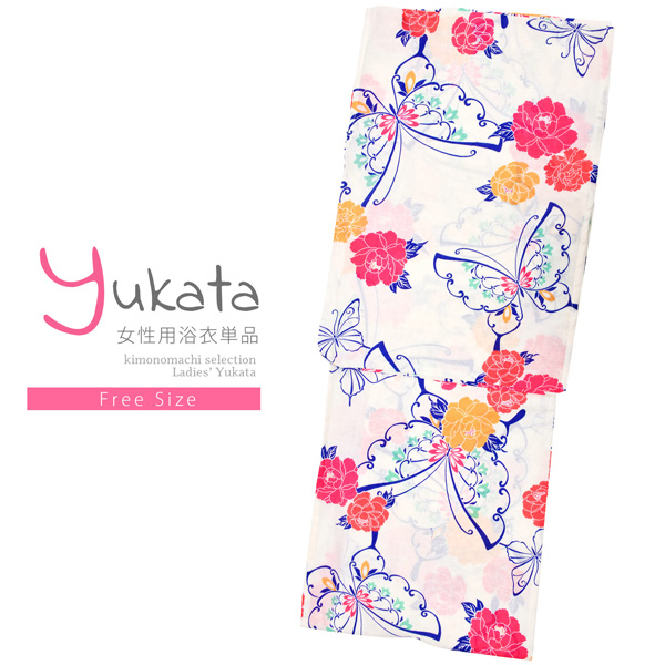 浴衣 レディース 単品「白地 蝶、ブルー」フリーサイズ レトロ モダン 大人柄 女性浴衣単品 女浴衣 ゆかた yukata 【メール便不可】ss2506ykl10