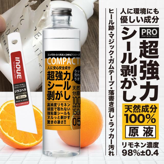 【オレンジ 天然成分100%】超強力 シール剥がし ラベル剥がし インパクト D-リモネン シールはがし (COMPACT) 原液150ml 落書き消し 業務用【プロ用の威力】
