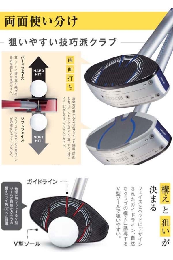 グラウンドゴルフ ハタチ メンズ レディース ダブルフォースクラブ 右利き 左利き 日本グラウンドゴルフ協会認定品 右打者 左打者 両打者用 両面打ち ブラック 黒 ブルー レッド 青 赤 グリーン 緑 送料無料 HATACHI BH2875