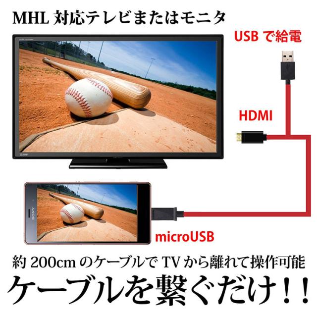 HDMI変換ケーブル 1080P対応 2m microUSB-HDMI変換 給電用USBケーブル付 5pinタイプ専用 MD5PIN