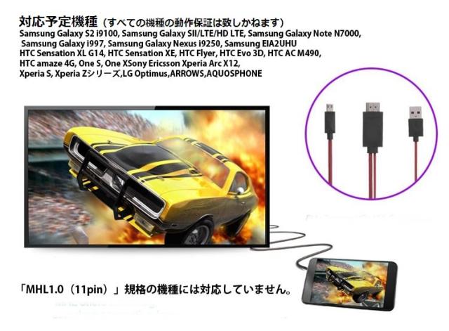 ・GalaxyS4/S3/Note2などの「MHL1.0(11pin)」規格の機種には対応していません。