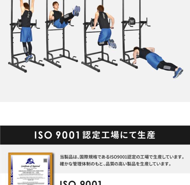 | 本体サイズ | 本体:W720mm×D910mm×H1880-2330mm 懸垂バー:W1020mm |