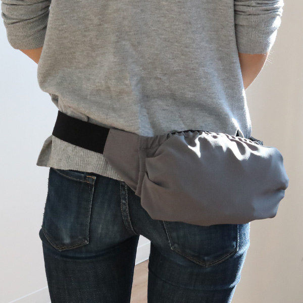 ウエスト部分のポケットに本体を収納すると、コンパクトに収納することができます。ママバッグやベビーカーの収納スペースにもすっきり収まるサイズで、気軽に持ち運ぶことができます。