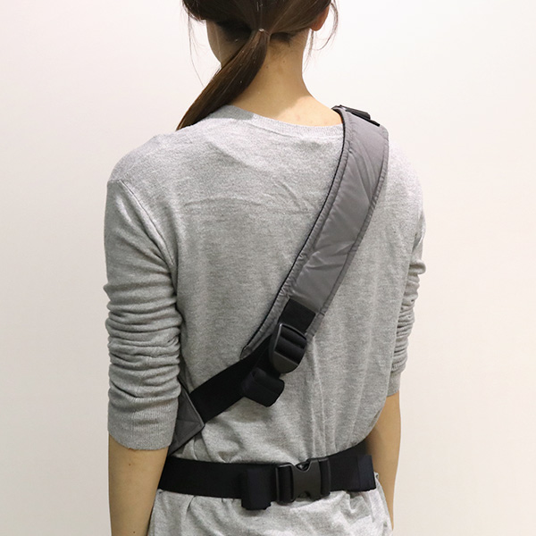 装着はウエストベルトを着けて、ショルダーベルトをかけるだけの2ステップ。簡単に装着できるので、ちょっとそこまで抱っこしたいとき、ぐずってすぐに抱っこしてあげたいときなどに素早く抱っこすることができます。腰と肩で重さを分散するので、ママにかかる赤ちゃんの重みを軽減します。